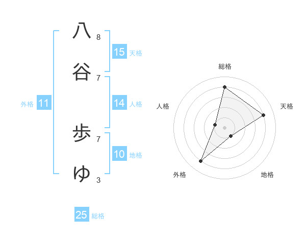 八谷 歩ゆさんの天格は15画の4点!