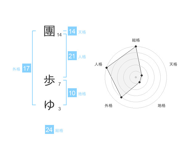團 歩ゆさんの総格は24画の5点!