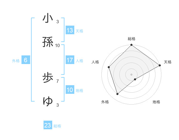 小孫 歩ゆさんを姓名の画数から五運を鑑定
