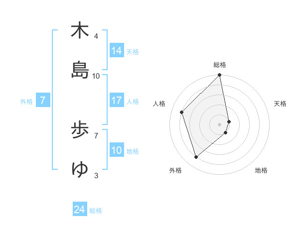 木島 歩ゆさんを姓名の画数から五運を鑑定