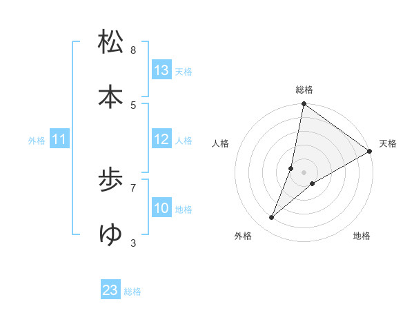 松本 歩ゆさんを姓名の画数から五運を鑑定