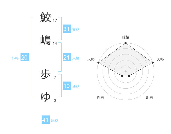 鮫嶋 歩ゆさんの天格は31画の5点!