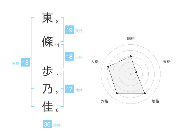 東條 歩乃佳さんを姓名の画数から五運を鑑定