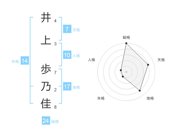 井上 歩乃佳さんを姓名の画数から五運を鑑定