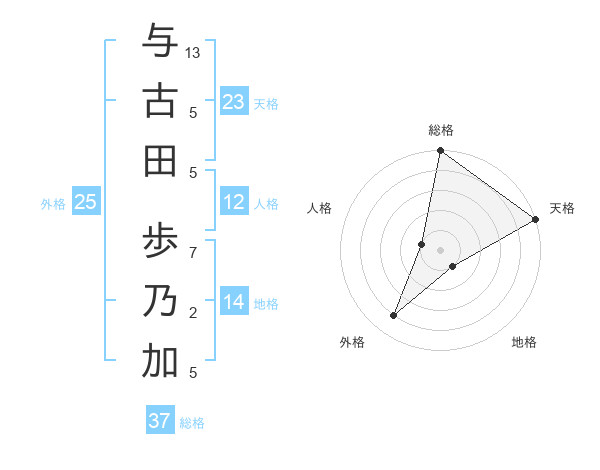 与古田 歩乃加さんを姓名の画数から五運を鑑定