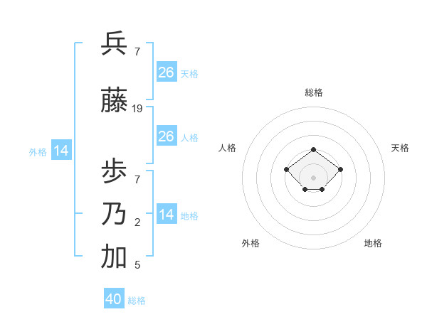 兵藤 歩乃加さんの外格は14画の1点!