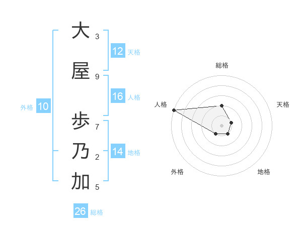 大屋 歩乃加さんの総格は26画の2点!