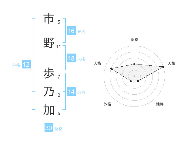 市野 歩乃加さんの天格は16画の5点!