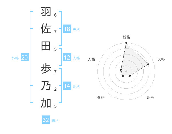 羽佐田 歩乃加さんを姓名の画数から五運を鑑定