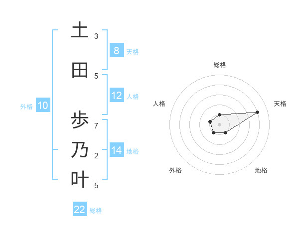土田 歩乃叶さんの総格は22画の1点!
