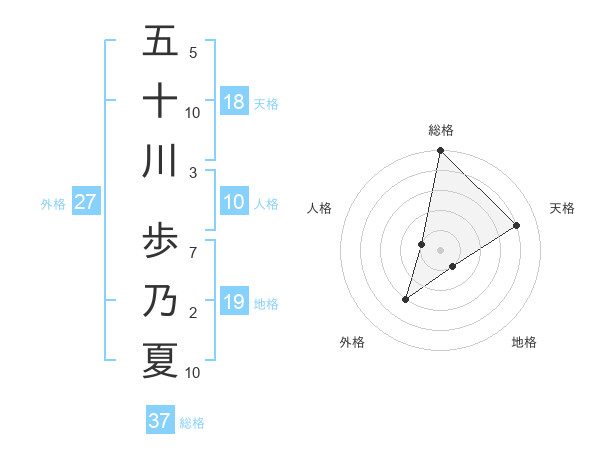 五十川 歩乃夏さんを姓名の画数から五運を鑑定
