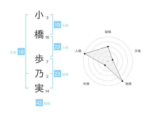 小橋 歩乃実さんを姓名の画数から五運を鑑定