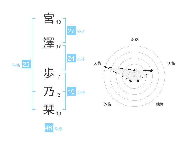 宮澤 歩乃栞さんを姓名の画数から五運を鑑定