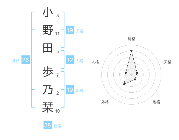 小野田 歩乃栞さんを姓名の画数から五運を鑑定