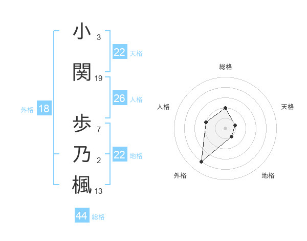 小関 歩乃楓さんを姓名の画数から五運を鑑定