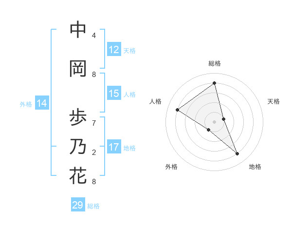 中岡 歩乃花さんの総格は29画の4点!