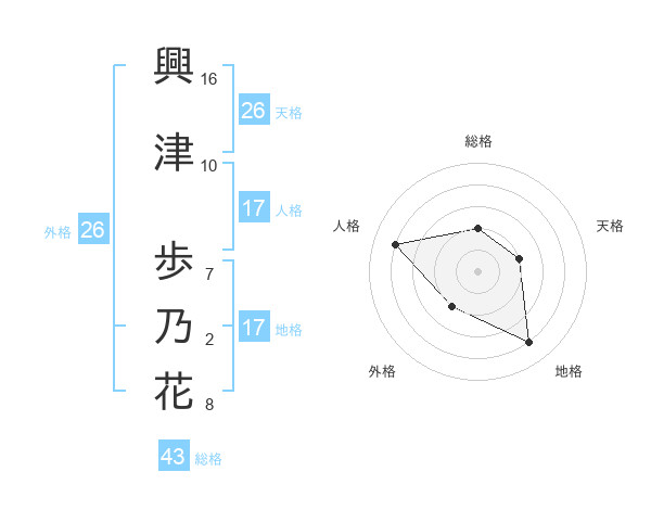 興津 歩乃花さんを姓名の画数から五運を鑑定