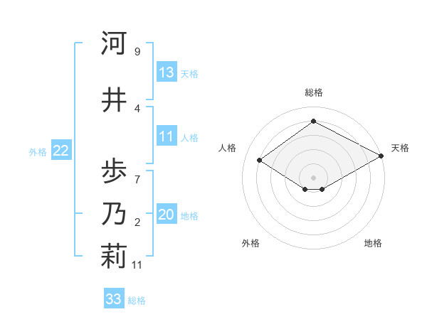 河井 歩乃莉さんを姓名の画数から五運を鑑定