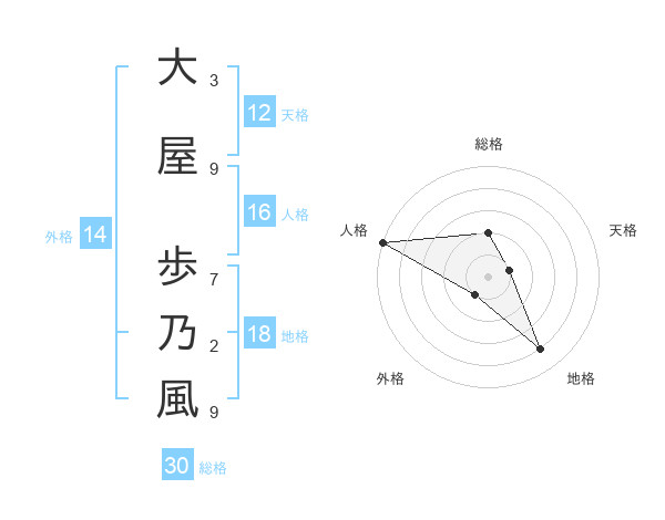 大屋 歩乃風さんを姓名の画数から五運を鑑定