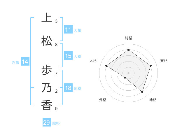 上松 歩乃香さんを姓名の画数から五運を鑑定