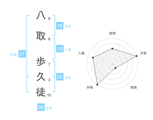 八取 歩久徒さんを姓名の画数から五運を鑑定