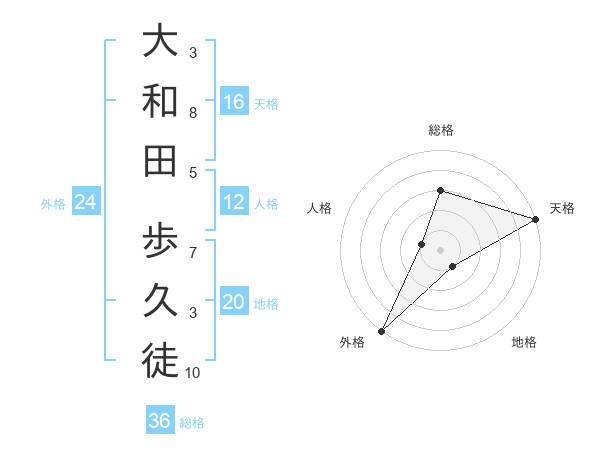 大和田 歩久徒さんを姓名の画数から五運を鑑定
