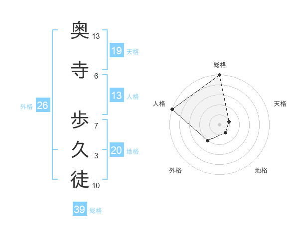 奥寺 歩久徒さんの総格は39画の5点!