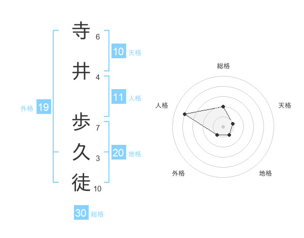 寺井 歩久徒さんの総格は30画の2点!