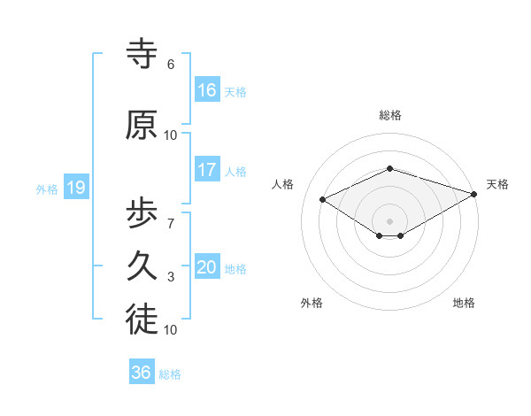 寺原 歩久徒さんを姓名の画数から五運を鑑定