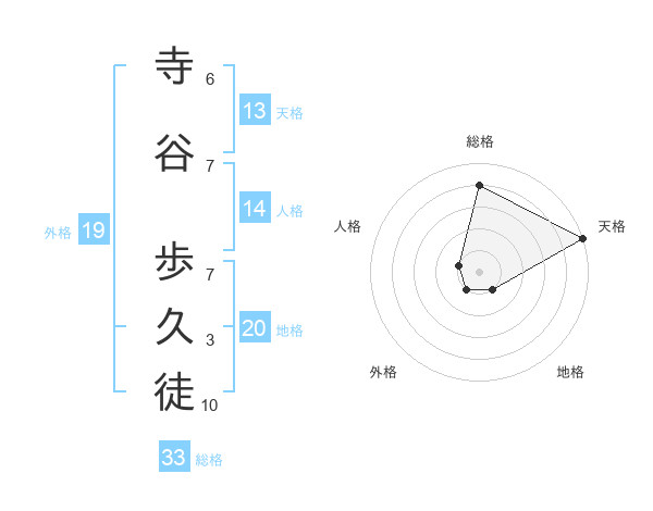 寺谷 歩久徒さんを姓名の画数から五運を鑑定