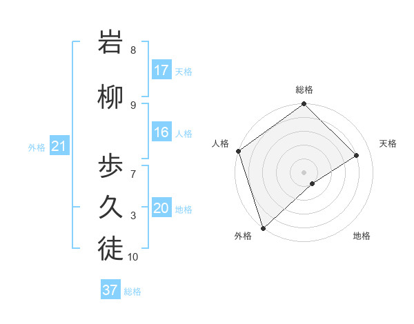 岩柳 歩久徒さんの天格は17画の4点!