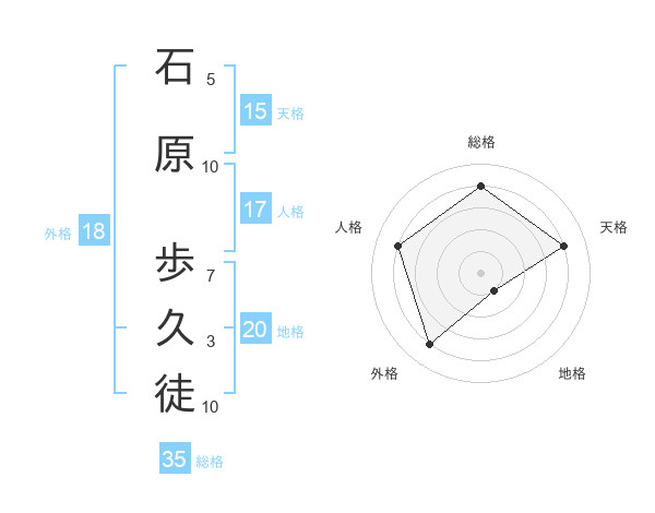 石原 歩久徒さんを姓名の画数から五運を鑑定