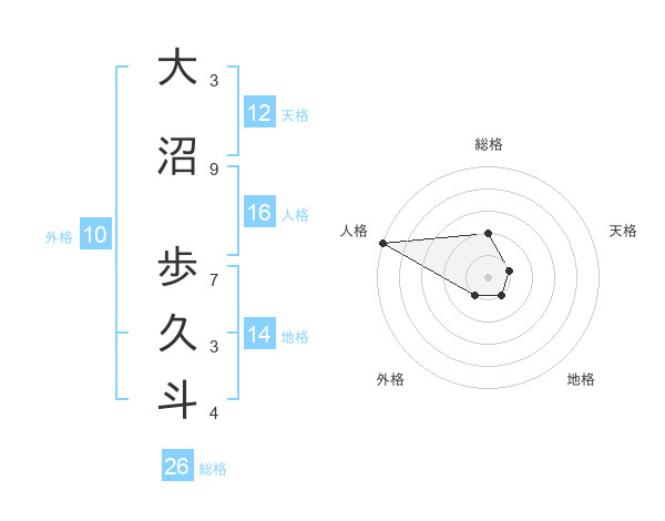 大沼 歩久斗さんを姓名の画数から五運を鑑定