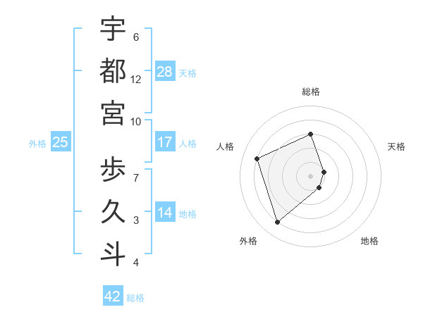宇都宮 歩久斗さんを姓名の画数から五運を鑑定