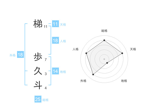 梯 歩久斗さんの総格は25画の4点!