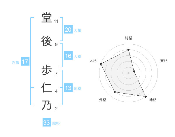 堂後 歩仁乃さんの外格は17画の4点!