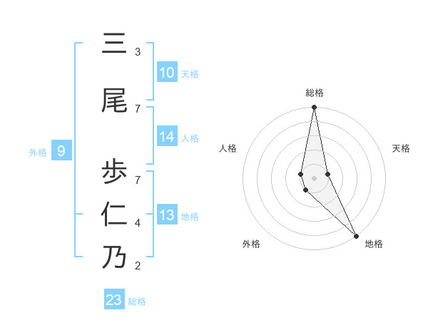 三尾 歩仁乃さんを姓名の画数から五運を鑑定