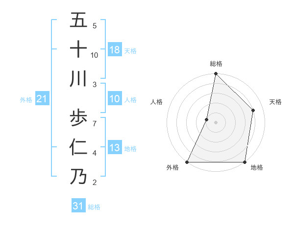 五十川 歩仁乃さんを姓名の画数から五運を鑑定