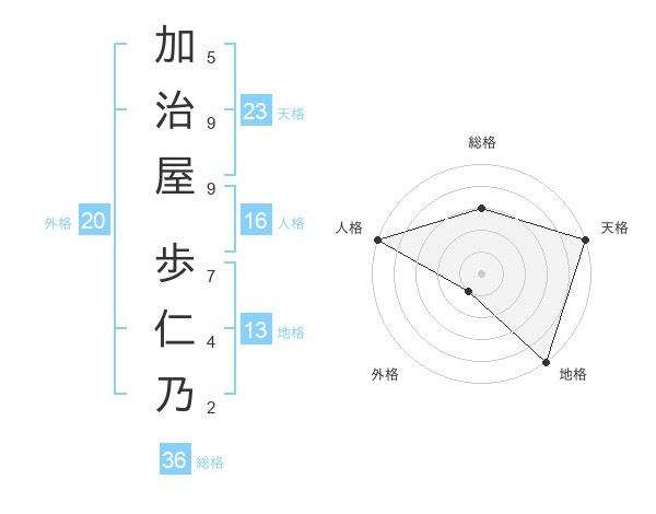 加治屋 歩仁乃さんを姓名の画数から五運を鑑定