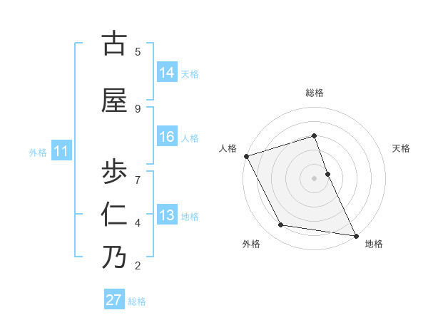 古屋 歩仁乃さんを姓名の画数から五運を鑑定