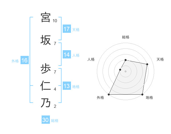 宮坂 歩仁乃さんを姓名の画数から五運を鑑定