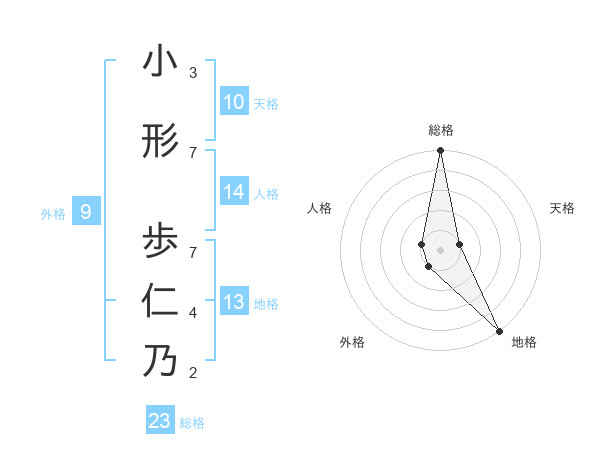 小形 歩仁乃さんの総格は23画の5点!