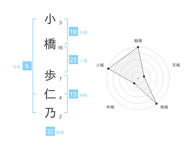 小橋 歩仁乃さんを姓名の画数から五運を鑑定
