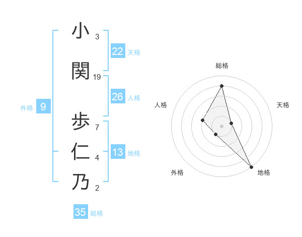 小関 歩仁乃さんの総格は35画の4点!