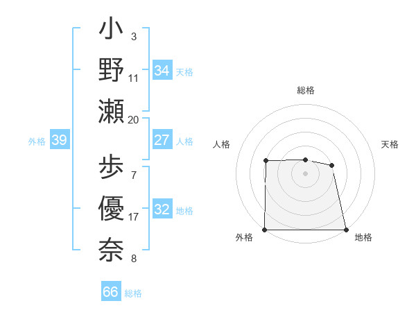 小野瀬 歩優奈さんを姓名の画数から五運を鑑定