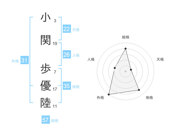 小関 歩優陸さんを姓名の画数から五運を鑑定