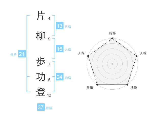 片柳 歩功登さんを姓名の画数から五運を鑑定