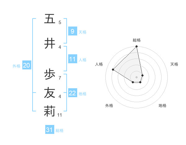 五井 歩友莉さんを姓名の画数から五運を鑑定