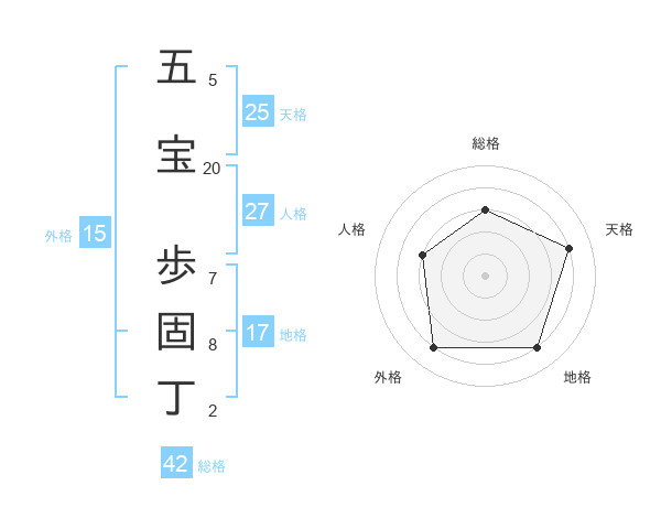 五宝 歩固丁さんの総格は42画の3点!