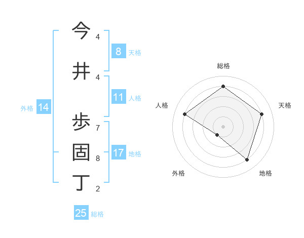 今井 歩固丁さんを姓名の画数から五運を鑑定